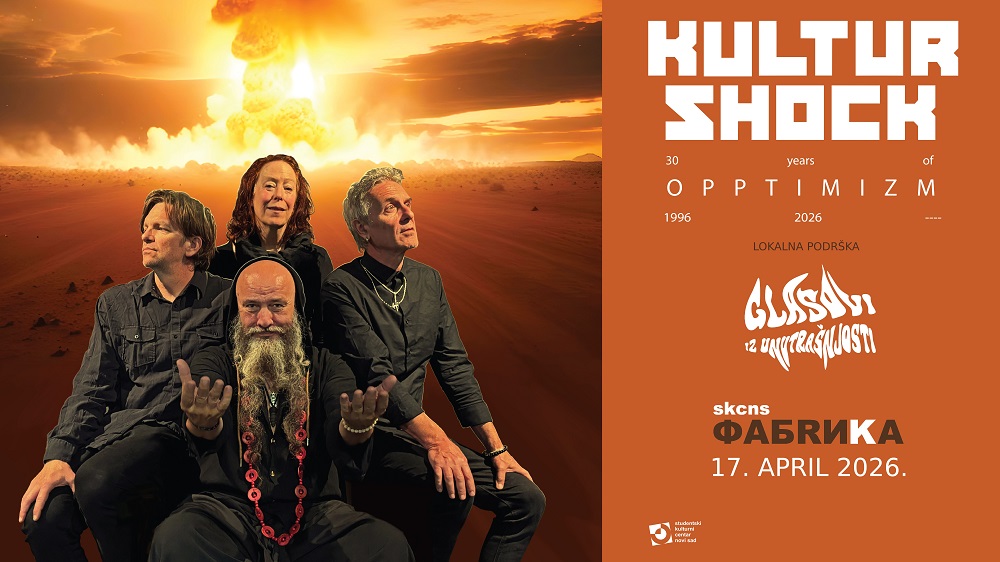 Bend Kultur Shock nastupiće u SKCNS Fabrici u petak 17. aprila 2026, a ovaj koncert deo je evropske turneje na kojoj obeležava tri decenije postojanja i promoviše svoj novi album. Kao podrška nastupiće lokalni sastav Glasovi iz unutrašnjosti.