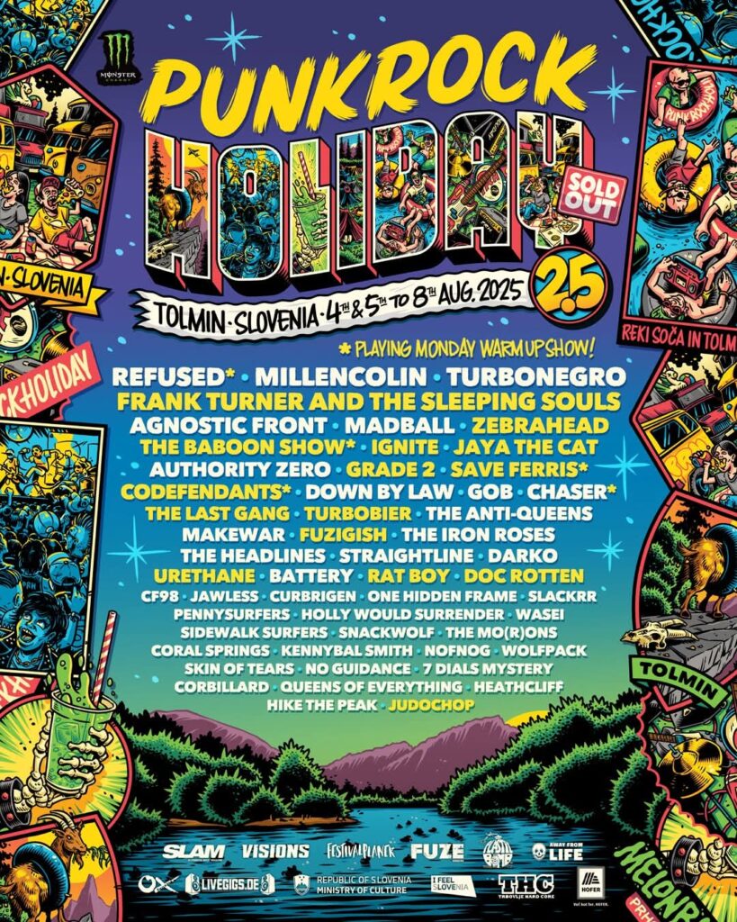 Bendovi se stvarno bore da postave svoje planirane turneje na zdrave noge, pa iz organizacijskog tabora festivala Punk Rock Holiday 2.5 apeluju da se podrže i lokalni organizatori kako bi se punkrock scena uopšte održala. Kupovinom karte i za te druge koncerte na turneji, to se čini na pravi i jedini ispravni mogući način. Ono što jeste sigurno, to je da će u vremenu 04.08. – 08.08.2025. u Tolminu, na festivalu Punk Rock Holiday 2.5, zvanično nastupiti još 14 izvođača, i to su: Frank Turner, Zebrahead, The Baboon Show – Official, Ignite, Jaya The Cat, Grade 2, Save Ferris, Codefendants, The Last Gang, Turbobier, Fuzigish, Urethane, Rat Boy, Doc Rotten, Judo Chop.