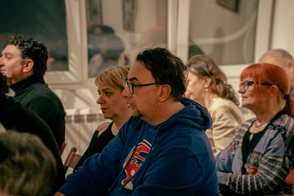 Bila je te večeri, nenadano, prilično dobro ispunjena Mala sala tog lokalnog hrama vrhunske umetnosti, uglavnom publikom koja je ipak poželela da čuje i priče ljudi „sa druge strane medalje“, onih koji bi da kažu koju reč i u odbranu tog danas bestelesnog komada teritorije, koja se nekada nazivala Jugoslavijom, i koje se već 35 godina, uz najbestijalnije priče i kvalifikacije odriču gotovo sva jugoslovenska deca.